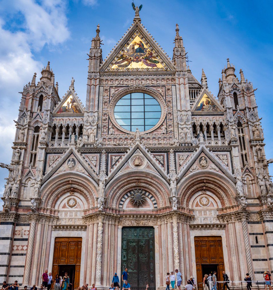 Главной находкой в этом городе стал Храм Судьбы – Сиенский собор. Duomo di Siena – один из старейших храмов готической архитектуры в Италии. Здесь можно увидеть работы великих скульпторов XIII-XIV веков – Донателло, Джованни Пизано и Микеланджело Буонарроти. Расположен собор на центральной площади Пьяцца-дель-Дуомо в городе Сиена.