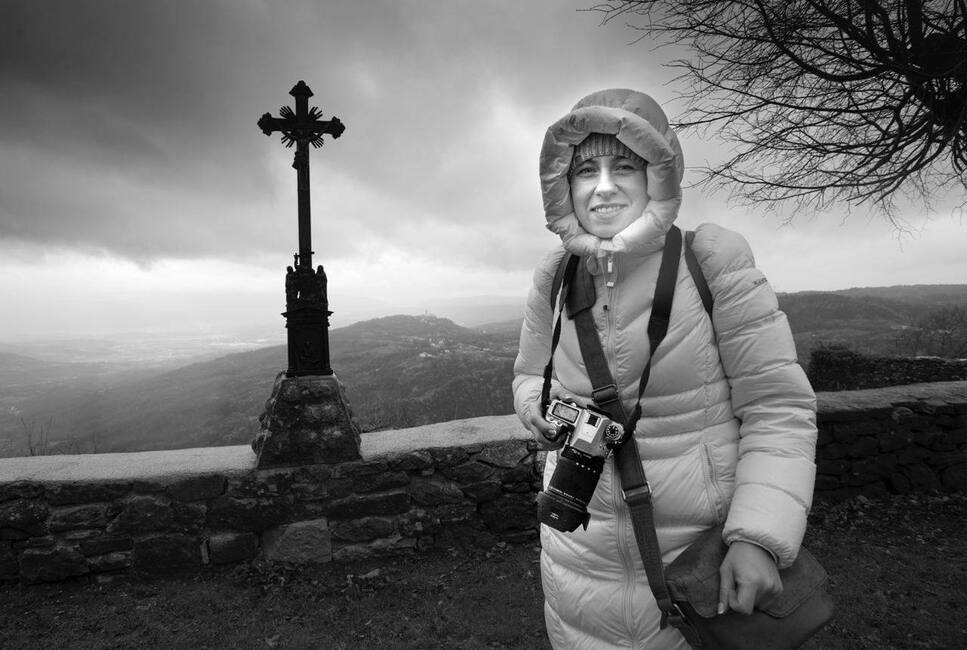 Ещё меня просили рассказать о фототехнике, которой я пользуюсь. Основная моя камера, которой я работала 2 года в экспедиции, была Leica CL особой комплектации, с объективом, который давал уникальные фотографии, снятые будто бы на плёнку. Отработала этой камерой я как с автомата Калашникова, хотелось уже натуральности без художественных эффектов, и Олег Викторович подарил мне новый фотоаппарат Zeiss ZX-1 – это лучшее, конечно, что я видела в своей жизни. По причине дождливой погоды, я не могла работать им всё время и переходила на водонепроницаемый Pentax K5, который тоже отработал идеально, но он не даёт тех цветов, что Zeiss. Кроме того, Олег Викторович любезно поделился со мной своей маленькой Leica C-lux с нефиксированым объективом, чтобы приближать объекты, гербы, символику. Ни один символ от меня не ушёл, я надеюсь. И вот эти три камеры – это была моя безупречная комбинация на экспедицию по северу Хорватии.