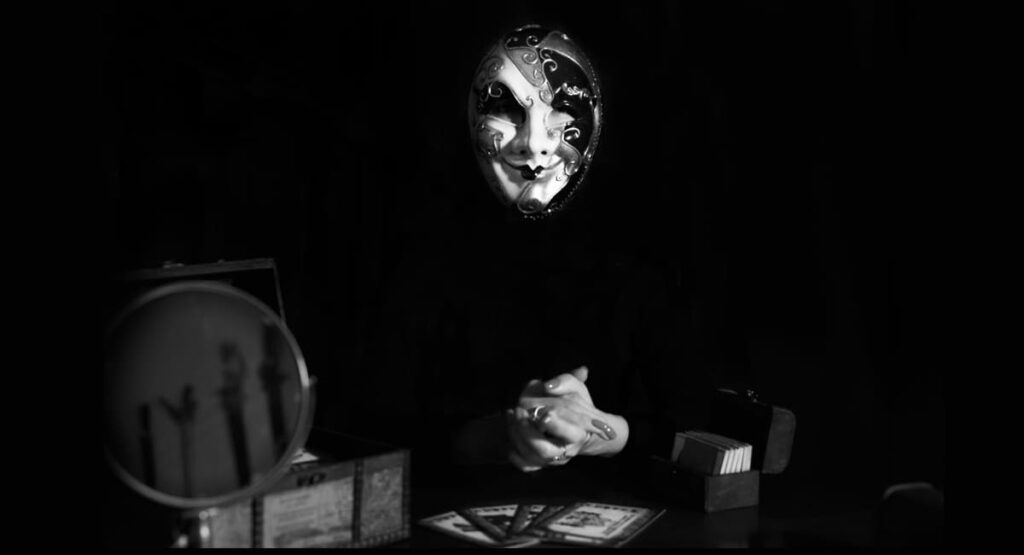 Венецианская дама — символ всех женских пороков на Земле. Несмотря на то, что это «дама», мужчина тоже может корчить из себя эту маску.