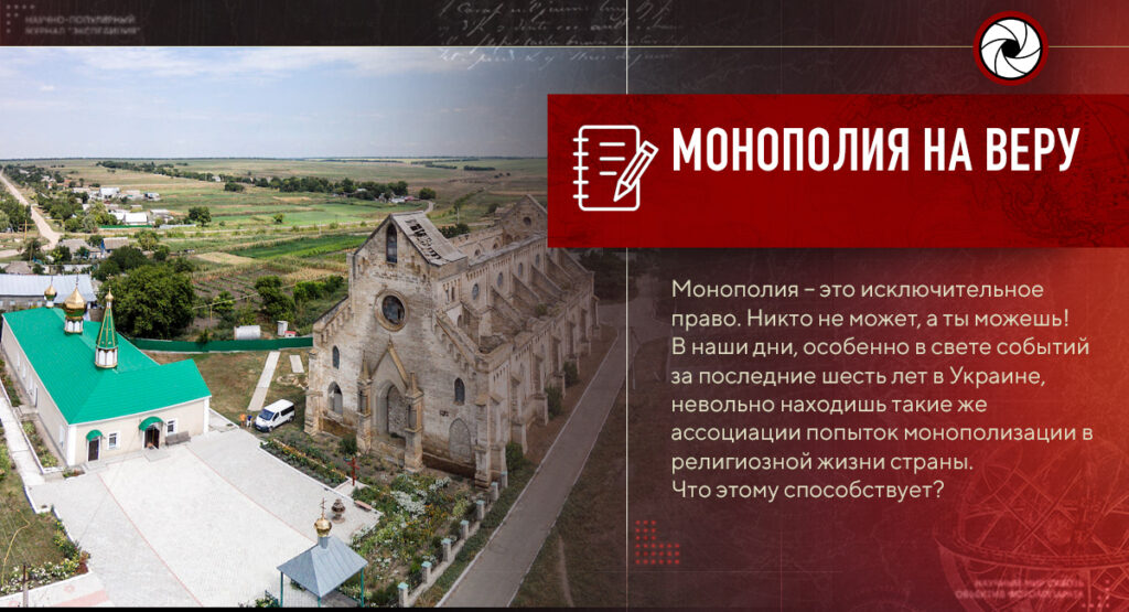 Это уже история, прототипологические уроки которой надо учить, а в наши дни, особенно в свете событий за последние шесть лет в Украине, невольно находишь такие же ассоциации попыток монополизации в религиозной жизни страны. Что этому мнению способствует? И заявления духовных лидеров, вмешательство в политические процессы, и собственные наблюдения в многочисленных экспедициях по Западной, Центральной, Южной Украине. Но Украина настолько многогранна и многонациональна, что делать ставку на монополию какой-либо религиозной конфессии или объединения, — было бы большой ошибкой.