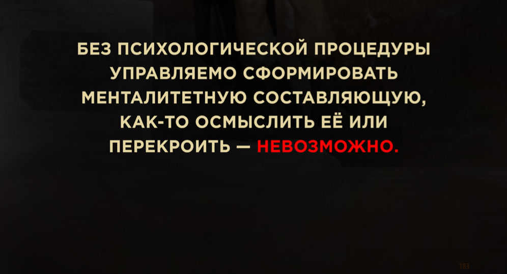 Без психологической процедуры управляемо сформировать менталитетную составляющую, как-то осмыслить её или перекроить – невозможно.