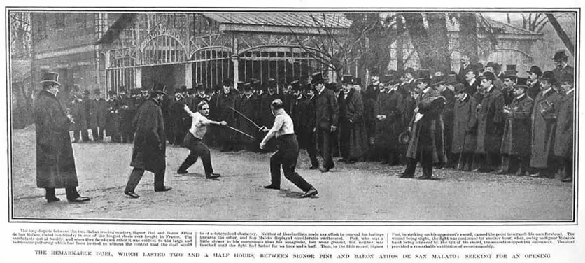 Все знали в XIX в., что в Италии никогда не было единого фехтования. Италия никогда не вела завоевательных войн, поэтому здесь никогда не было воинского искусства. В своей книге Чезаро Блинджини пишет: