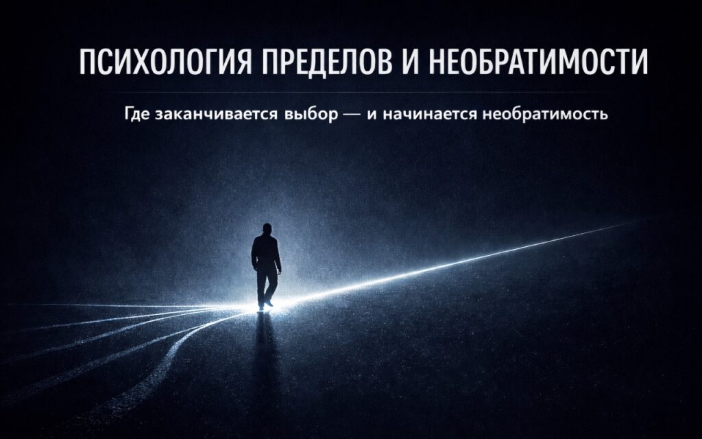 Когда подобные условия возникают в реальной жизни, они создают ситуацию, в которой человек может пересечь точку невозврата, даже не осознавая этого. Именно поэтому психология пределов рассматривает ключевым объектом исследования не последствия решения, а момент перехода, когда структура будущего радикально меняется.